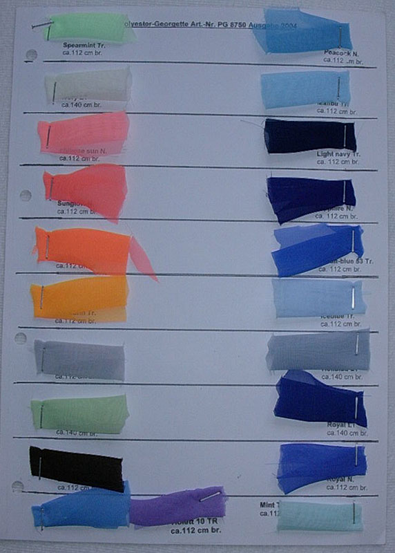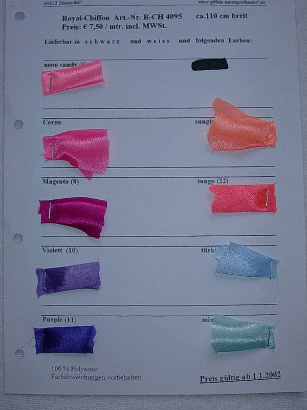 Achtung: die abgebildeten Musterkarten sind teilweise nicht mehr aktuell und die Farben evtl. nicht mehr lieferbar. Die Lieferanten und Preise (teilw. nicht mehr aktuell) stehen auf den Karten.